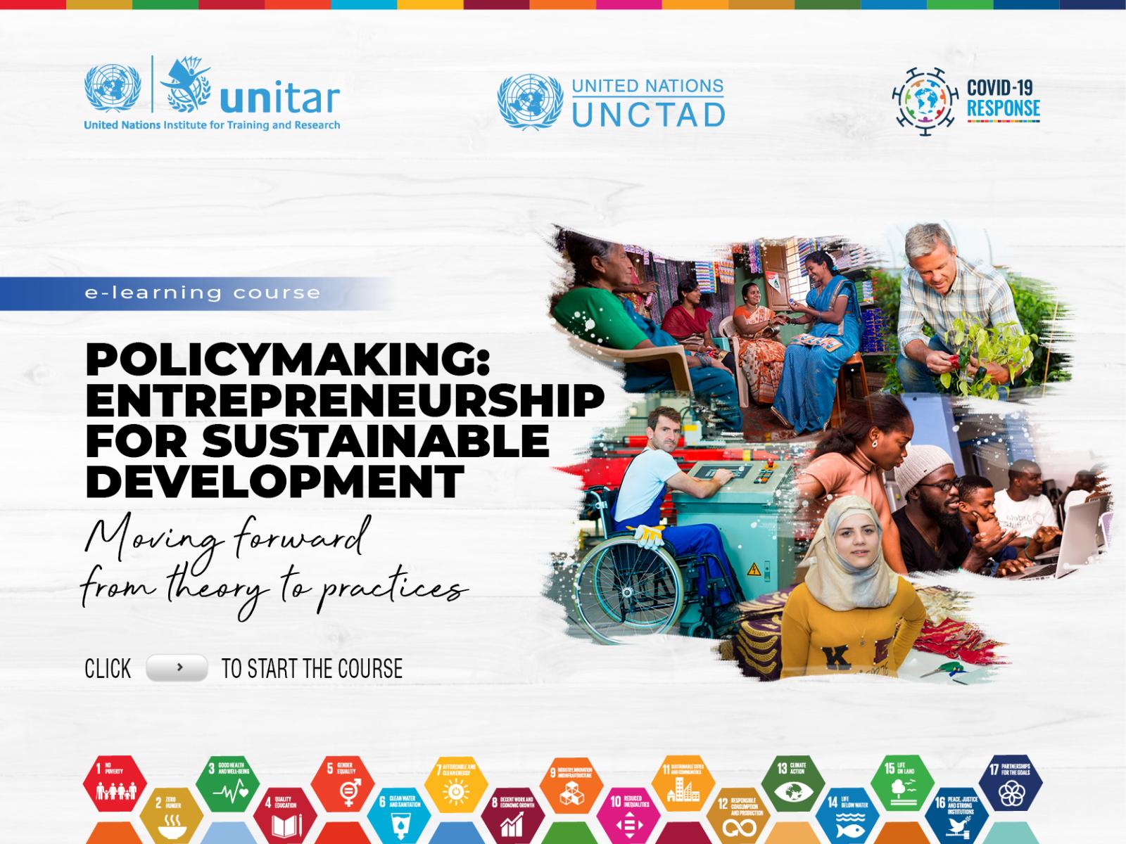 To complement this endeavour, UNCTAD joined efforts with the United Nations Institute for Training and Research (UNITAR) to develop the e-learning course Policymaking for inclusive and sustainable entrepreneurship. The development of this tool is part of the project “Global Initiative towards the post-COVID-19 resurgence of the MSME sector” financed by the UN Development Account and implemented by UNCTAD in cooperation with the UN Regional Commissions and DESA. The objective of the project is to strengthen the capacity and resilience of micro, small and medium enterprises (MSMEs) in developing countries and economies in transition to mitigate the economic and social impact of the global COVID-19 crisis. It is part of the UN Framework for the immediate socio-economic response to COVID-192.